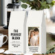 Celebrate your love with The Perfect Blend—a personalized roasted coffee favor that guests will actually use and love! This elegant wedding coffee bag features your custom photo, names, date, and a heartfelt message of thanks. Perfect for bridal showers, wedding receptions, or engagement party favors.