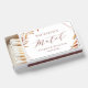 Simple elegance the perfect match script design with couple names and wedding date with rustic watercolor fall botanical foliage greenery and faux copper foil leaves and geometric frame, great personalized wedding matchboxes favors.