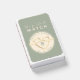 Elegant, modern, minimalist sage green wedding favor matchboxes with monogram, names, date and gold rope heart. The perfect match!