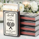 Personalized Hand Drawn Quirky Handwritten Whimsical Wedding Matchboxes. These adorable matchboxes make a charming favor for weddings, engagement parties, or bridal showers. At the center, the phrase “The Perfect Match!” appears in a mix of serif fonts and handwritten script for an elegant, upscale touch with a retro hand-drawn vibe. Beneath the wording, two crossed tennis racquets are illustrated in a delicate hand-sketched style, with a small heart floating just above them for a romantic and playful detail. The couple’s names and wedding date sit neatly around the design to frame the artwork beautifully.