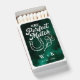 Bring good fortune to your special day with our charming The Perfect Match Emerald Green Lucky Horseshoe & Shamrock Wedding Matches! These unique matchboxes feature a luxurious emerald green background with shimmering gold accents, adorned with classic lucky horseshoes and shamrocks, along with the playful phrase "The Perfect Match." They're the ideal unique favor, adding a touch of personalized Irish charm and practicality to your wedding.