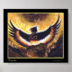 This Phoenix is seen rising up from the smoke and ash with the pattern of flames on it's plumage.