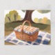 The Picnic | Blue White Striped Wicker Watercolor Postcard
