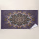 Dive into an artistic journey where the light of friendship bends and transforms: a beach towel that weaves a tale of reflection, symbolized by a mandala of vibrant hues and abstract threads.