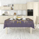 Enhance your dining space with the pillared thread tie-in purpura refraction tablecloth, featuring symbolic purple mandala art inspired by the refraction of light and the complexities of friendship. Made from 100% cotton with vibrant edge-to-edge printing, this tablecloth brings abstract elegance to any setting. Dimensions: 52" x 70". Made in the USA.