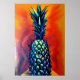A pineapple on a table with a red and orange colored background. This is a AI generated art.