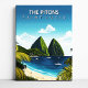 Bring Saint Lucia home with a bold Pitons view. Deep blue water, bright shoreline, lush green peaks, palm details give this tropical travel canvas a clean, modern look. Great for coastal decor, beach house style, or a calm office backdrop. A thoughtful gift for Caribbean travelers and island lovers.