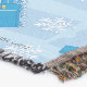 Retro style pattern featuring train tickets, The Polar Express train, silver bell, and snowflakes.