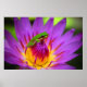 Dwarf green tree frog on water lilly flower