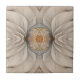 Ceramic tile design from "The Primal Om," an Apophysis fractal by Susan Wallace. Copyright © 2009, Susan Wallace. Abstract design composed of marble-textured petals spiraling inward to a radiant center. In muted shades of tan, blue, gold and cream.