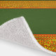 This runner features a bold, central field of deep, serene olive green, framed by twin borders of mesmerizing geometric design. The borders use interlocking circles and stylized quatrefoils in vibrant gold, saffron yellow, and terracotta orange, directly echoing the mosaic floors and illuminated manuscripts of the Byzantine Empire. The Byzantine world, the thousand-year heir to Rome, mastered this art of repetitive, non-representational geometry to symbolize the divine, eternal, and perfectly structured order of the cosmos.