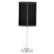 I have purchased other similar lamps. I use them as extra light for guest's. They are inexpensive, easy to assemble and good height for reading. I like that there are many pre-made shades to choose from and that, like this one, you can use your own art.