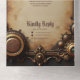 The pulsating heart of mechanics, a glowing steampunk heart. The frame features the characteristic steampunk style, characterized by a fascinating blend of Victorian elegance and industrial flair. Complex mechanical details such as intricate gears, screws, and bolts adorn the edge, lending depth and texture to the design. The heart is mechanically designed, with visible springs, small gears, and metallic embellishments that symbolize its vitality in a technical context. Flanking the heart are dark wings.