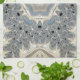 This captivating and intricate kaleidoscopic fractal pattern features a symmetrical, star-shaped center that radiates outward with swirling, recursive designs reminiscent of organic, floral, or oceanic forms. The palette is dominated by soft, muted tones of beige, cream, pale blue, and gray, creating a serene and harmonious atmosphere. The fractal spirals are finely detailed with delicate loops, swirls, and small black voids that add depth and contrast to the composition. The repeating patterns give it a sense of infinite complexity and mesmerizing beauty, evoking a sense of cosmic or natural elegance.