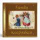 Halloween is a fun filled time that warrants a fantastic product for your loved ones and friend. “The Pumpkin People” is perfect for this occasion. The design features a male on his knees handing flowers to his female friend who’s sitting in a chair. There is also a black cat peaking around the door. The design also has the text “Best Wishes For All Hallowe’er” on it. This is all set in a brown and gold frame with two floral corners. The design was designed Monday the 13th of June 2011, using art work by http://sunflowerfriends.com/shop/ and Coral Paint Shop Pro.
