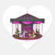 A cute, very colorful purple carousel/merry-go-round image complete with decorated, wooden horses of all colors and designs that really adds a touch of carnival or the circus.