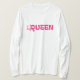 The Queen's clothing features the word Queen on th T-Shirt