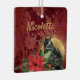 The perfect Christmas ornament for those who love their holidays with a bit of a Goth flair. Design features vintage raven with crown illustration with watercolor poinsettia bouquet on vintage Christmas brocade background. Personalize with name or monogram