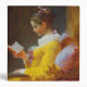 The Reader (Young Girl Reading) by Jean-Honore Fragonard, c. 1772, is a deftly painted oil on canvas portrait of a seated young girl reading a book. The brilliant colors and masterly wet-in-wet, alla prima oil technique reveal a tender profile portrait emerging from the warm canvas ground.