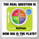 If you wonder about today's federal dietary guidelines, you'll enjoy this poster featuring the MyPlate.gov logo from the USDA along with the query "The Real Question Is How Big Is The Plate?" Make others do a double-take with a dose of dietary guideline attitude with this poster. Note: This product is neither endorsed nor supported by the USDA.