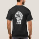 This t-shirt is about the evolution of consciousness, and being able to see past the differences of religion or nationality that limit our vision and our progress as human beings. The back is a fist of solidarity that unites all the major religions.