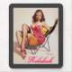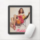 A vintage pinup girl image with charcoal gray background and coordinating fushcia, script text. Customize this retro mousepad with whichever name you like!