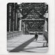 black and white of lone cyclist on "The Chain of Rocks Bridge"