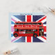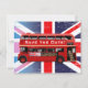 This customized Save-the-Date Card features a well-known vintage red Routemaster bus, a true symbol of London and England with the Union Jack in the background.