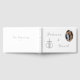 Design features a white background over entire product. Front displays the names of bride and groom in an elegant, silver-colored Nuptial font. The photo you supply is displayed as an oval in top right corner. Bottom left corner features the image of a silver cross and joined rings. Reverse features the words, "The Beginning" in same Nuptial font. Spine displays the phrase, "Our Wedding" also in Nuptial font. All text is customizable. Designed to coordinate with "The Refined Catholic Silver Wedding Suite" collection.