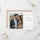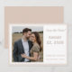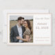 Design front features the photo you supply displayed at left and framed by an elegant, thin, pale pink border. Heading, date, names and city, state of wedding are featured in an elegant pale pink. Entire design is framed by an elegant pale pink and white border and is featured against a white background.