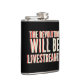 Well made flask, a little better than I had expected. Flask came in clear plastic box which gave it a nice presentation when I took it out of the zazzle packaging. Image is not printed on flask but on sticker. Don't know how this will hold up I haven't used it yet. This would make a Great gift! I plan to purchase more for friends! Cheers. I thought a little brighter than computer. Very crisp, writing wasn't