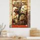 The contrast between the old-world charm of the Wild West and the nightmarish horror of the undead creates a gripping tension, making this showdown a true battle for survival. Poster is designed after the old golden age Hollywood westerns.