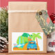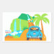 A white rectangle sticker with an illustration of The Road to Hana. The back of a vintage bug sports an Aloha license plate with views of waterfalls on the way to the destination. A tropical palm tree and a road sign guide the traveler to Hana. A cute sticker for a Hawaiian themed invite or gift. Perfect for destination wedding too!