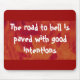Funny sayings mousepad. The road to hell is paved with good intentions.