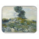 The Rocks. Vincent van Gogh. Landscape in cold green-blue tones. There are stones in the foreground. In the middle ground there is a hillock with a tree and stones. The sky is clouded over. Reproduction of famous works of art images in the public domain.