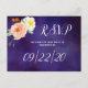 This collection features a moody midnight blue background with trendy typography and floral accents. Easily personalize the design with your wording to make these RSVP postcards totally unique to your special day.