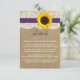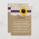 The rustic sunflower collection is a stunning design featuring a lovely rustic kraft effect background with a romantic vintage white lace effect trim finished with a stunning sunflower and purple ribbon. These Detail Cards can be personalized for your special occasion and would make the perfect matching insert for a wedding suite, bridal shower, engagement party, birthday party and much, much more. These cards can be used to create Detail Cards, Guest Information Cards, Accommodation Cards, Direction Cards, Gift Registry or Wishing Well Cards as well as Ceremony and Reception Cards. Matching wedding items can be found in the collection.