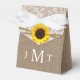 Celebrate in style with these elegant and very trendy wedding favor boxes. The design features a rustic sunflower with burlap, lace and twine which is perfect for any country or barn themed marriage celebration. The design is easy to personalize with your own monogram initials and your family and friends will be thrilled when they receive this fabulous favor boxes. Matching items can be found in the collection.