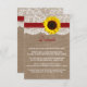 The rustic sunflower collection is a stunning design featuring a lovely rustic burlap effect background with a romantic vintage white lace effect trim finished with a stunning sunflower and red ribbon. These Detail Cards can be personalized for your special occasion and would make the perfect matching insert for a wedding suite, bridal shower, engagement party, birthday party and much, much more. These cards can be used to create Detail Cards, Guest Information Cards, Accommodation Cards, Direction Cards, Gift Registry or Wishing Well Cards as well as Ceremony and Reception Cards. Matching wedding items can be found in the collection.