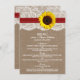 The rustic sunflower collection is a stunning design featuring a lovely rustic burlap effect background with a romantic vintage white lace effect trim finished with a stunning sunflower and red ribbon.