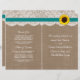 The rustic sunflower collection is a stunning design featuring a lovely rustic burlap effect background with a romantic vintage white lace effect trim finished with a stunning sunflower and teal ribbon.