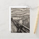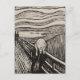 The Scream (1895), created by Norwegian painter Edvard Munch, is a monochromatic lithograph print of his most famous work. In this black-and-white version, the haunting image retains the emotional intensity of the original painting. The central figure, with its agonized face and raised hands, stands on a bridge with a turbulent, abstract background, suggesting a deep psychological torment. The swirling lines and bold contrasts emphasize the figure’s anguish, embodying universal themes of anxiety and existential dread. This lithograph version captures the stark, raw emotion of the original in a more simplified, yet equally powerful, expression.