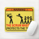 Funny mousepad with the adage, "THE SCRUM MASTER PROTECTS THE TEAM"