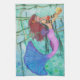 Original watercolor painting by Sandra Gale of a fantasy mermaid holding a glowing ball. This under Sea design makes a beautiful wearable piece of art. The pale colors in a sea foam green underwater scene looks uniquely beautiful.