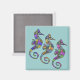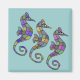Graphic illustration of colorful seahorses in a tiled design. Enjoy the beauty of sealife in artwork by Magins Creations.