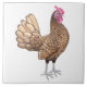Original fine art design of an alert Sebright Bantam rooster by artist Carolyn McFann printed on a quality ceramic tile.