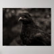 A black and white photograph of a Raven.