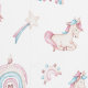 Looking for a design that combines magic and softness? This wallpaper features a pure white background adorned with cute little unicorns and pastel rainbows (pink and light blue), along with twinkling stars and magic wands.