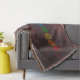 A quality printed throw has its advantages. This is a much finer weave throw than its loopier cousins, and though lighter, it is worth the investment for custom room accessorizing. The back is much prettier than the typical brown, and the fringe on the long sides very vivid, the selvage nicely done. Before photographing, I washed the throw in cold water, delicate, with a thicker woven throw the same size. On tumble dry low, this throw was dry in half the time as the other. This is a very practical quality if you use throws for furniture covers or to wrap up in frequently. The sleekness of the fabric makes it a great layer for accenting or protecting without the feeling of sitting on too much stuff. Perfect for napping or when you feel a light chill coming on. The color printing is beautiful and on this fabric, matched the design and color of my Photoshop image. This is an advantage for blending room fabrics and colors. The fringe on the short sides prints the colors from the design image and therefore varies from the side fringe. I streaked a white fractal line through the plaid pattern to give the illusion of weaving. This printed as crisp as an illusory thread, and put some white in the short side fringe, showing another advantage of print vs loomed- for artistic purposes, line lines, detail, and color integrity can be planned and preserved. My loomed throws have color limitations and more of a needlepoint texture. Print throws reproduce an exact image. The throw felt a little stiff straight out of the package, but this went away in the first delicate wash. Of course I searched the wash water for ink or bleeding and there was none.