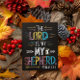 A shepherd leading a flock of sheep through a green pasture, symbolizing guidance and protection.